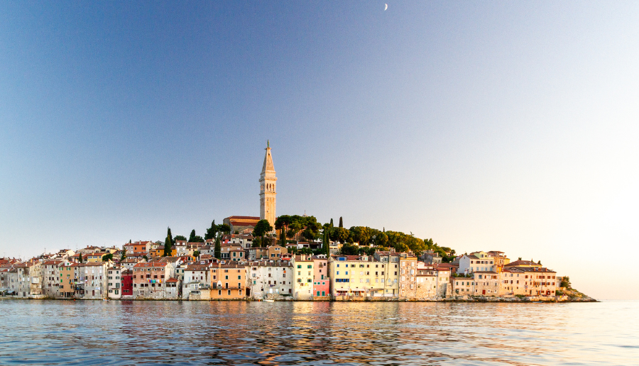 Der beliebte Urlaubsort Rovinj liegt an der Westküste Istriens, der größten Halbinsel an der Adria. Mit seinem reichen Natur- und Kulturerbe mit interessanten Sehenswürdigkeiten wie der Altstadt, dem Waldpark Goldenes Kap, sowie den kleinen Inseln vor der reizvollen Küstenlinie hat sich der malerische Ort zu einem der beliebtesten Reiseziele an der Adria entwickelt. Komfortable Hotelanlagen versprechen angenehme Ferien am Meer.